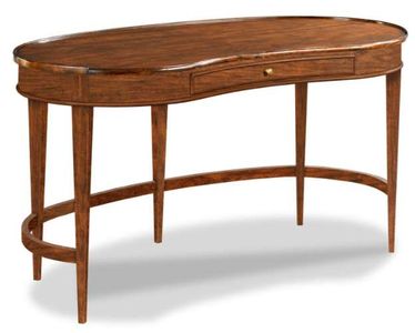 A serpentine kidney shaped cherry veneered top rests over a base with shaped apron rails fitted with a handy drawer. The desk is elevated on five gracefully tapered legs joined by wavy stretchers. Make a bold statement by incorporating this stunning furniture into your home.Read More