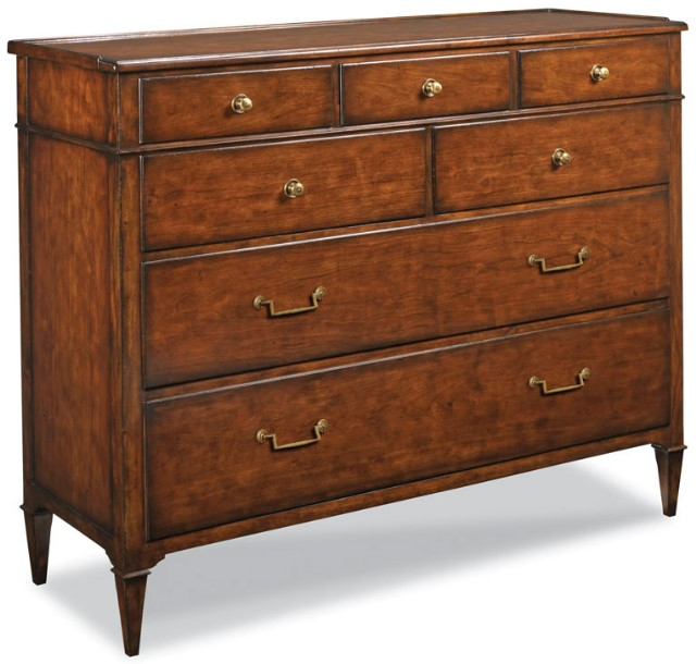 Experience the elegance of 19th Century French design with our exquisite storage chest. Crafted with a rectangular cherry top and seven spacious drawers, it exudes timeless charm. The graceful tapering chamfered posts add a touch of sophistication to elevate any space.Read More